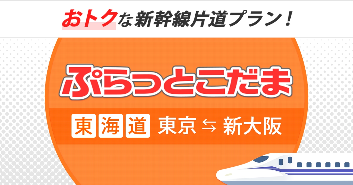 JR東海ツアーズが提供する「ぷらっとこだま」は、東海道新幹線(東京〜新大阪)の片道新幹線チケットとドリンク引換券がセットになった新幹線片道プランです。